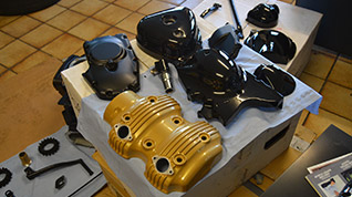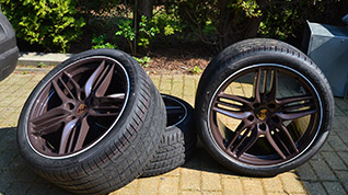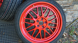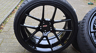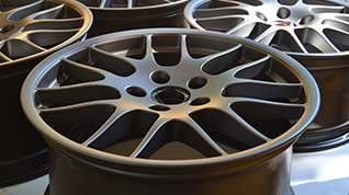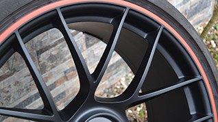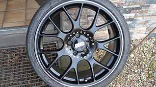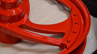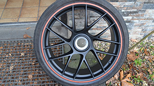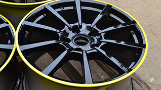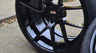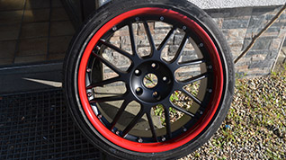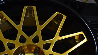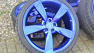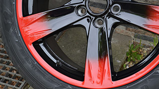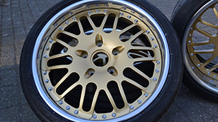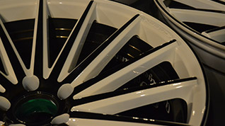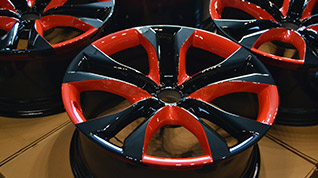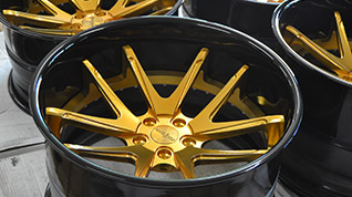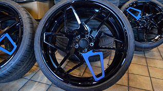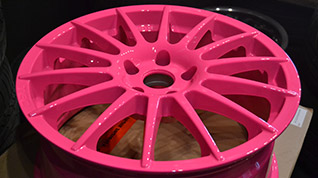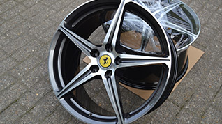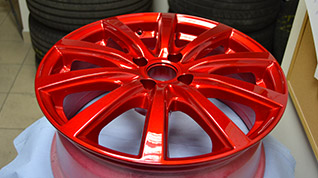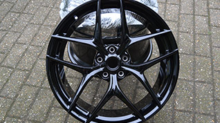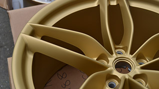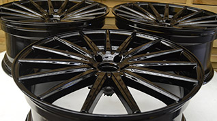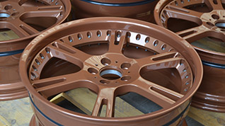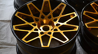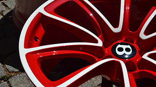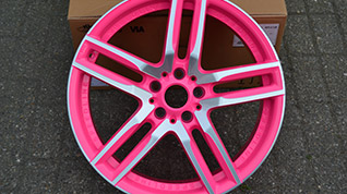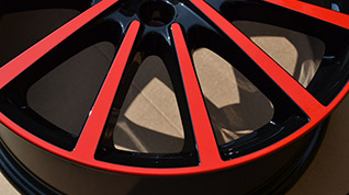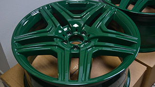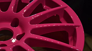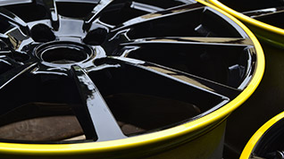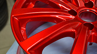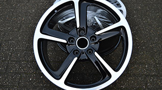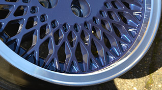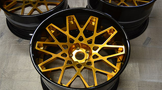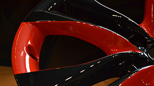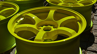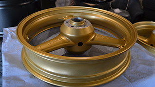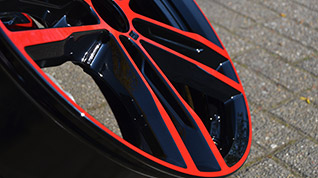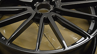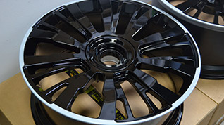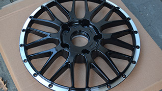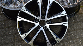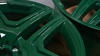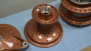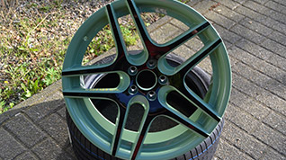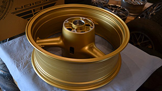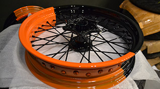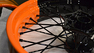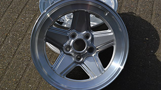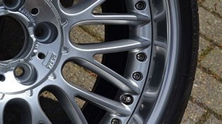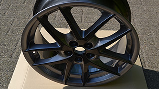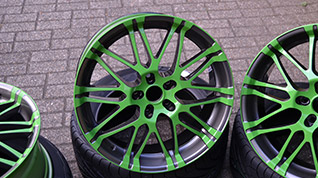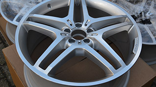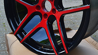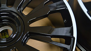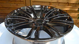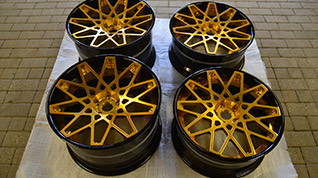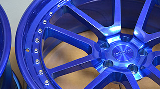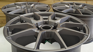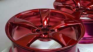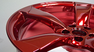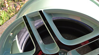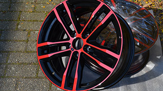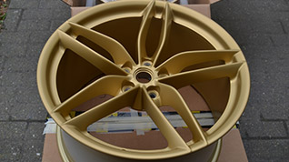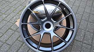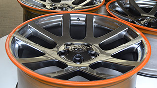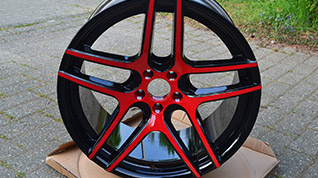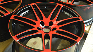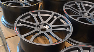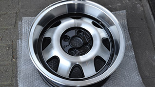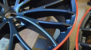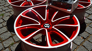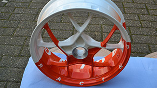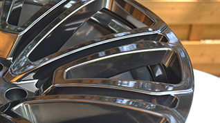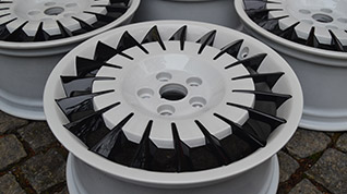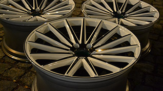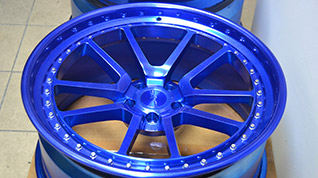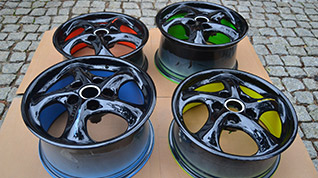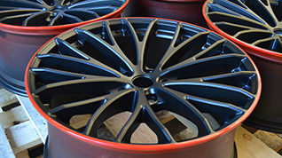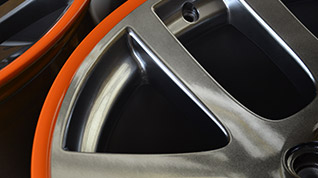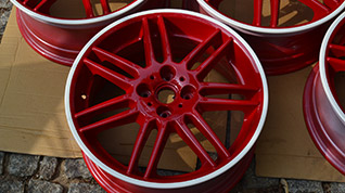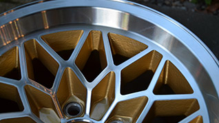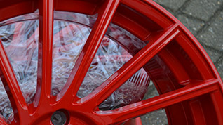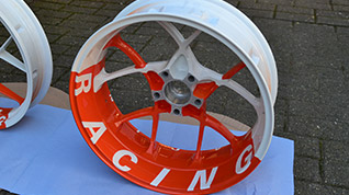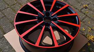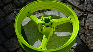 Nach dem Pulverbeschichten können die Teile auf Wunsch an bestimmten Stellen poliert werden und zum Schutz der polierten Flächen ergänzend klar beschichtet werden (z.B. das Felgenbett wie es auf dem Bild unterhalb zu sehen ist).