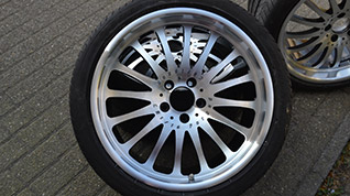 Seit kurzem haben wir nun auch das Glanzdrehen CNC in unser Programm mit aufgenommen. Beim Glanzdrehen wird die Oberfläche der Felge mithilfe einer sehr präzisen, computergesteuerten CNC-Maschine abgedreht, das Ganze mittels eines Diamant-Schneideinsatzes. Ziel ist es, Randstein- und Korrosionsschäden sowie veralteten Klarlack von der Felge zu beseitigen. Die Felge erhält so an den überdrehten Flächen ihren ursprünglichen, regenbogenartigen Schimmer zurück! Dieses Verfahren kann ebenso problemlos bei bereits pulverbeschichteten Felgen angewendet werden.